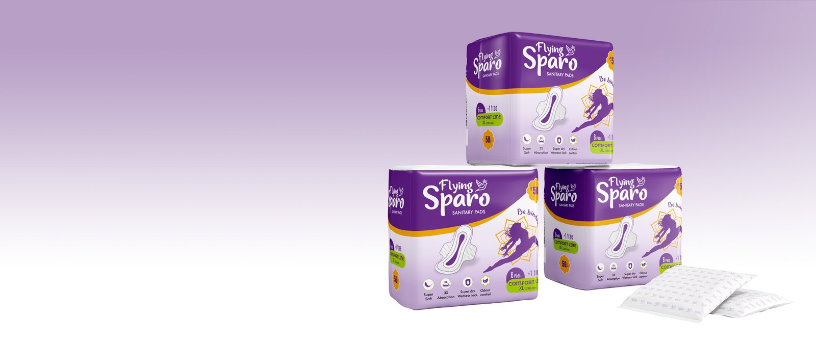 Welcome to Flying Sparo, your trusted companion for comfortable periods. We understand that every woman's journey is unique, which is why we've created a range of sanitary napkins designed to provide comfort, protection, and confidence during your menstrual cycle. Our products are made with soft, breathable materials, highly absorbent to prevent leaks, and available in different sizes for varying flow levels. All Flying Sparo napkins are dermatologically tested to be gentle on sensitive skin and free from harmful chemicals and fragrances. At Flying Sparo, we cater to the diverse needs of Indian women with our carefully crafted product lines. Whether you're in a bustling city, a growing town, or a rural village, we have the perfect solution for you. Our Premium line range is tailored for the urban market, Softline serves the semi-urban areas, and Comfortline is designed specifically for rural needs. We're here to support you through every stage of womanhood, from your first period and beyond, ensuring that you can face each day with confidence and ease.